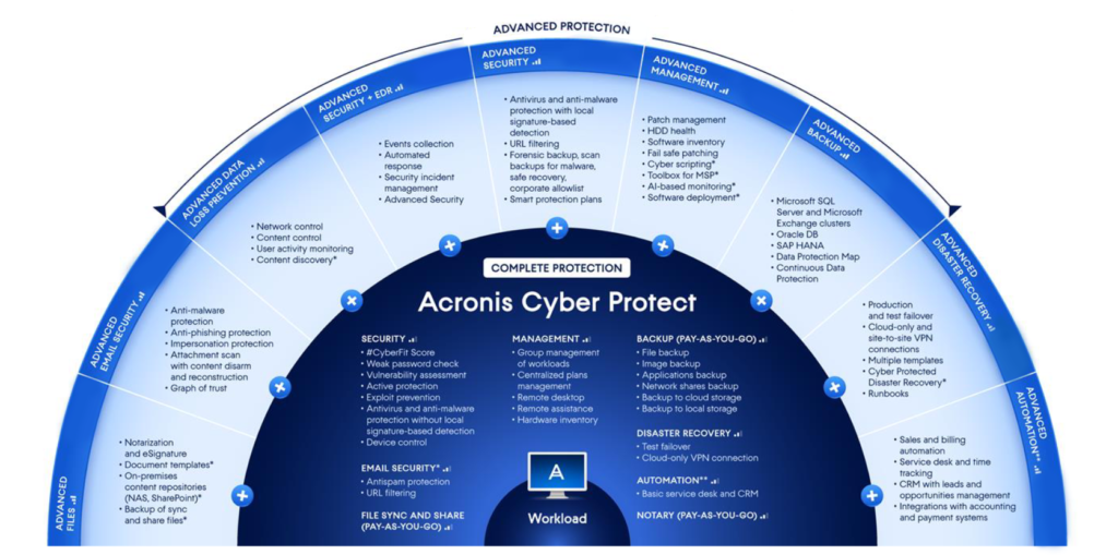 Nasze rozwiązania w zakresie cyberbezpieczeństwa to znacznie więcej niż oprogramowanie. To kompleksowa usługa outsourcingowa, której komponenty możesz dobrać samodzielnie. Dzięki temu zapewnienie ochrony danych i sprzętu w Twojej firmie będzie w pełni kompatybilne. Dzięki Acronis CyberProtect masz pewność, że narzędzia odpowiedzialne za tworzenie kopii zapasowej są stale połączone i w pełni kompatybilne z ochroną antywirusową. Połączenie back upu z innymi działaniami ochrony sieci firmowej zwalnia Ciebie i administratora IT z ciągłego sprawdzania aktualności oprogramowania i ważności licencji. Acronis z powodzeniem może zastąpić pracę kilku lub nawet kilkunastu oddzielnych programów. Dzięki połączeniu kopii zapasowej z modułem antywirusowym i systemem odzyskiwania zmniejsza się ryzyko występowania błędów oraz luk w ochronie.